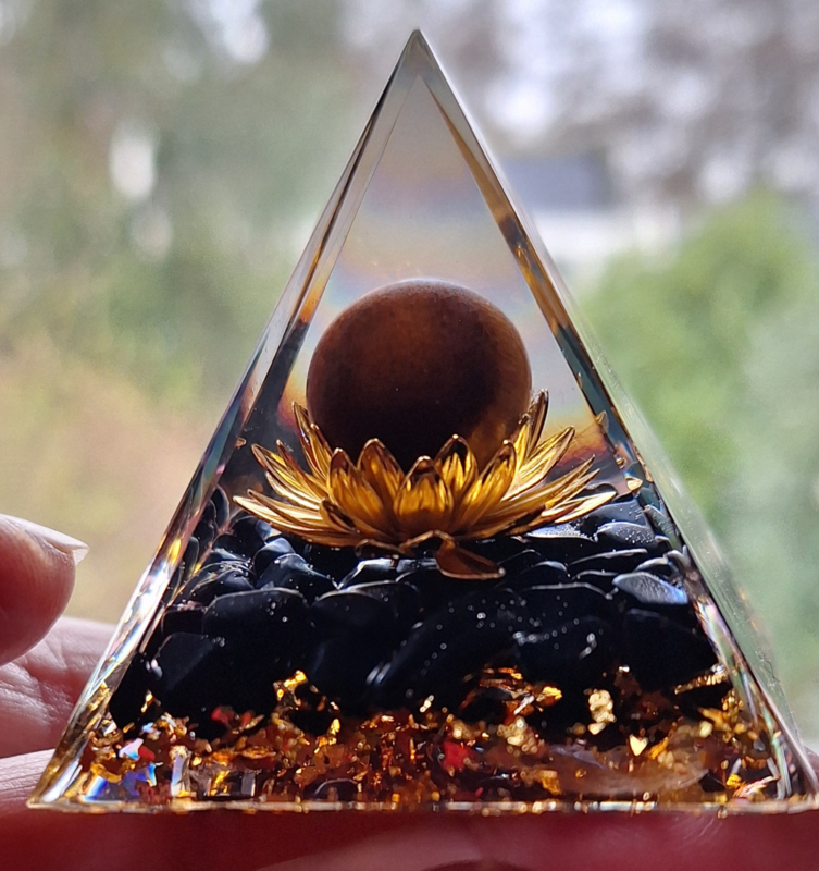 Orgonite Piramide Zwarte Tourmalijn lotusbloem