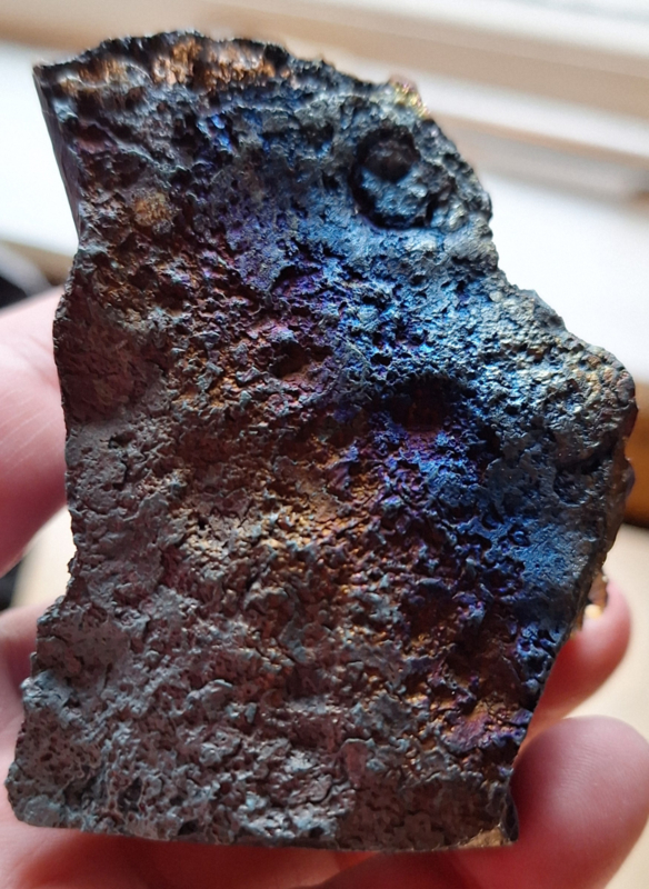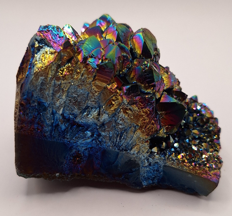 Titanium Amethyst kwarts is behandeld met titanium waardoor het oppervlak een olieachtige glans krijgt met veelal regenboog kleuren.
