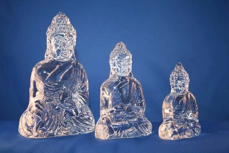 Zittende Varadamudra Boeddha van helder massief kristalglas.