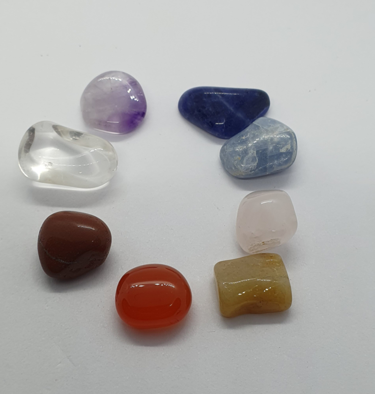 Chakra Edelstenen Set: 8 trommelstenen.