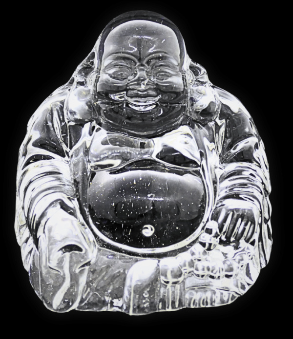 Lachende Boeddha beeld grootLachende Boeddha-beeld van massief helder kristalglas.