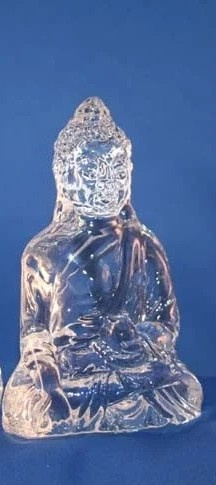 Boeddha beeld middelZittende Varadamudra Boeddha van helder massief kristalglas.