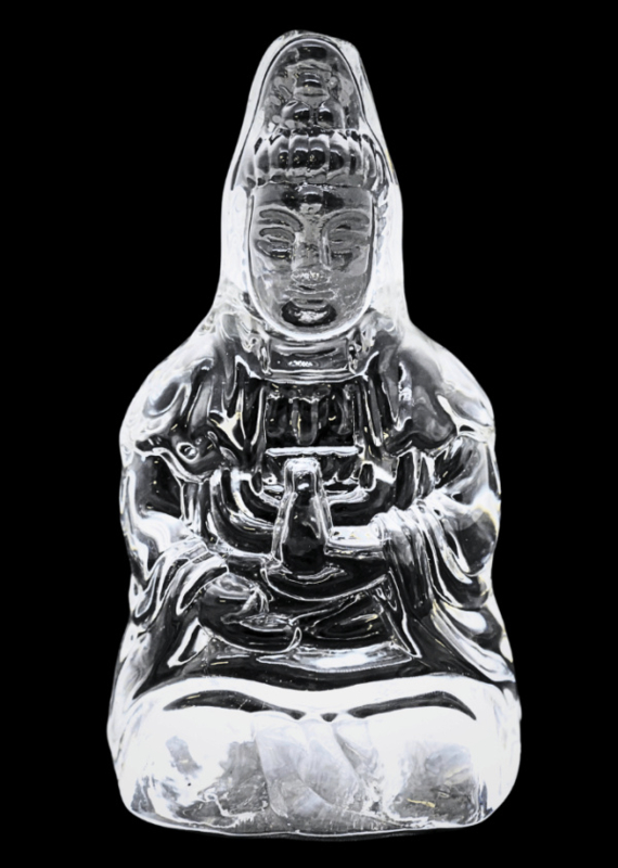 Kwan Yin beeld - middelZittende Kwan Yin van massief helder kristalglas,